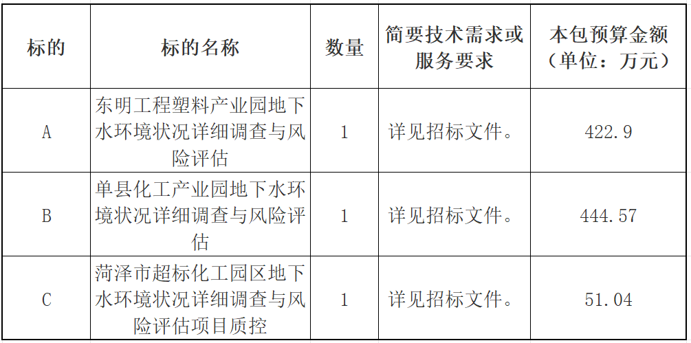【招标分享】预算918.51万元,菏泽市超标化工园区地下水环境状况详细调查与风险评估项目 公开招标公告